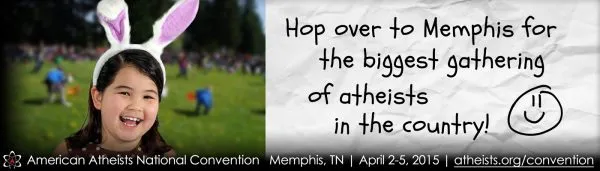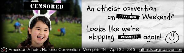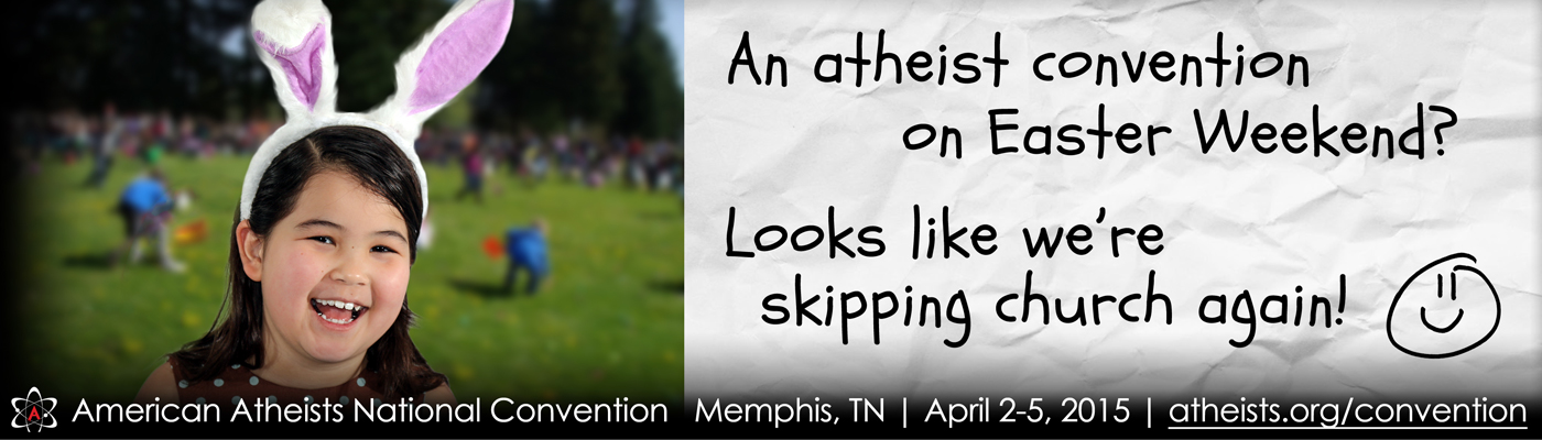 “The double standard is as ridiculous as it is discriminatory,” said American Atheists President David Silverman. “Our billboards feature a happy little girl wearing bunny ears. Our convention is, in fact, this April 2-5, which falls on Easter weekend. Is stating this fact what Americans, champions of free speech, find ‘aggressive’? This is exactly why we are coming to the Bible Belt—we go where we are needed; it could not be more clear that we are needed here.”