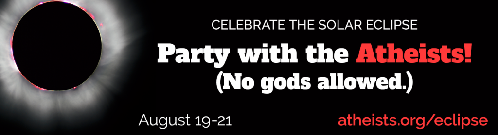 The American Atheists national convention coincides with the total solar eclipse that is crossing the United States on Monday, August 21 and features more than two dozen speakers, Friday night social events including a pub quiz and charity card tournament, an awards dinner on Sunday, and a comedy show featuring two of the original cast members from Mystery Science Theater 3000.