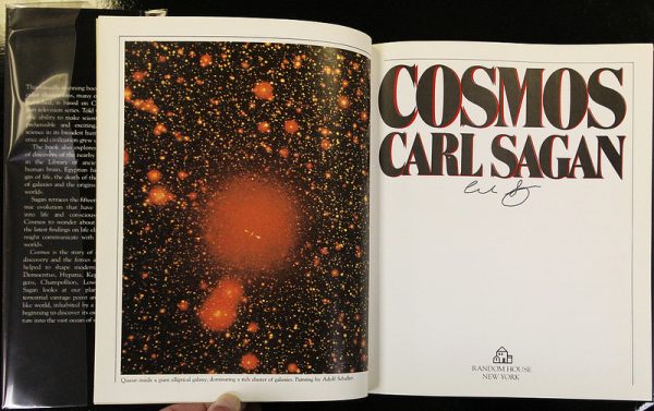 A hardcover, SIGNED COPY of the original “COSMOS” book by Carl Sagan
