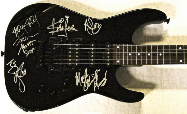 A sleek and sexy black Jackson electric guitar given to us personally by Jay Jay French, guitarist of Twisted Sister and speaker from our 50th Anniversary Convention—signed by the entire band (you’ll have to outbid Dave Silverman for this one!)