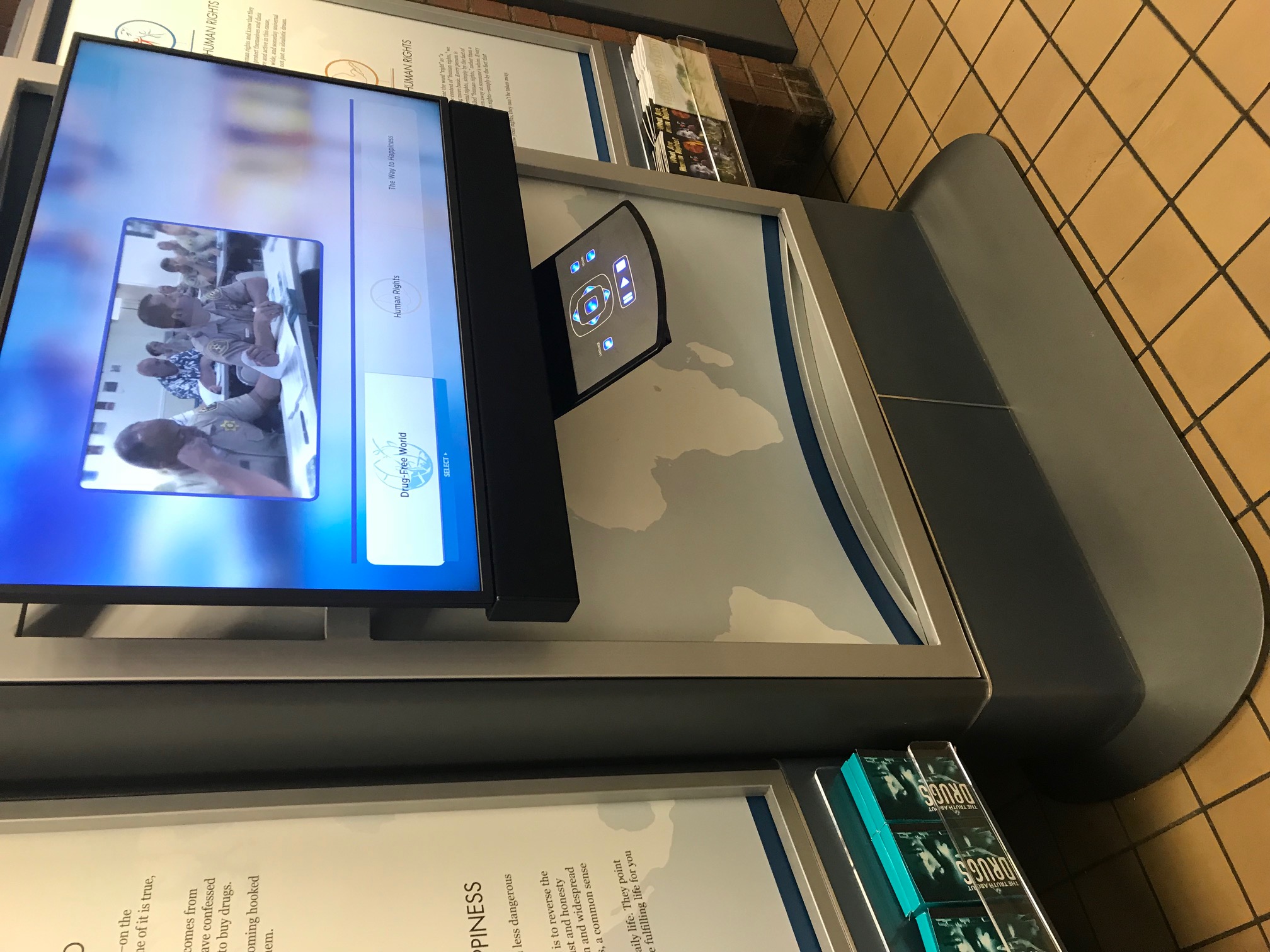 American Atheists was first made aware of the interactive kiosk—which featured a large video screen, an interactive touch panel, and free publications produced by the Church of Scientology—when a local resident contacted the organization with their concerns.