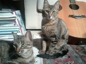 Obligatory picture of said kittens, left to right: Hickory (12 months), Maddie (8 months)