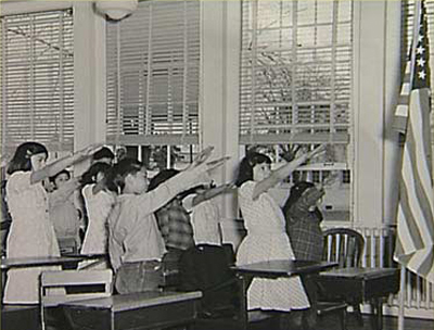 Listen to this recording of students reciting the pledge, taken from a movie made in 1939. The Pledge of Allegiance has been modified several times since it was first written; this is the original wording: