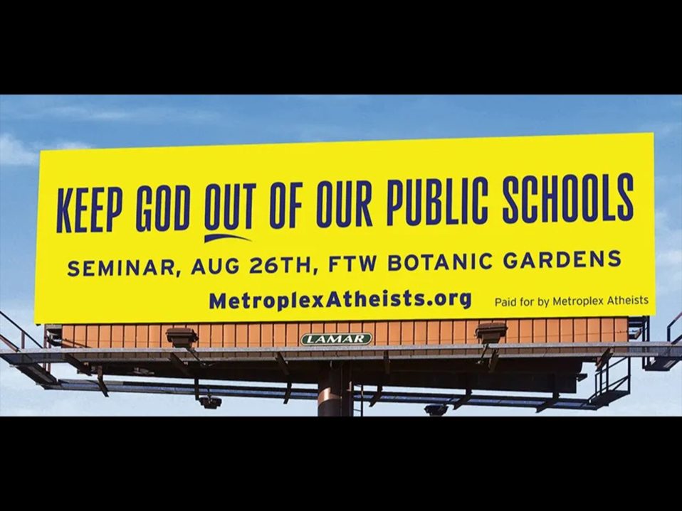 Fort Worth, Texas—The North Texas atheist group Metroplex Atheists has launched a billboard campaign to promote their educational event, “Keep God Out of Our Public Schools.” On Sunday, District Judge Reed O’Connor denied them a preliminary injunction to post banners on downtown lampposts. Nonetheless, the billboard campaign, which will run…...